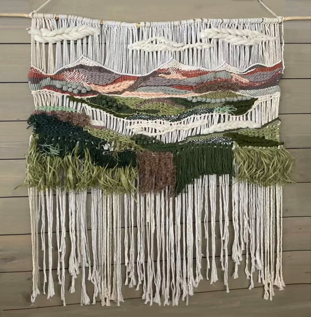 Рекомендуем украсить ваш дом или квартиру этим ярким, выразительным панно, выполненным в технике макраме. Я намеренно оставила кисточки неразрезанными, чтобы создать более объёмное и непринуждённое ощущение. Идеальный размер позволяет зрителю представить свои собственные истории о горах, облаках и травах.