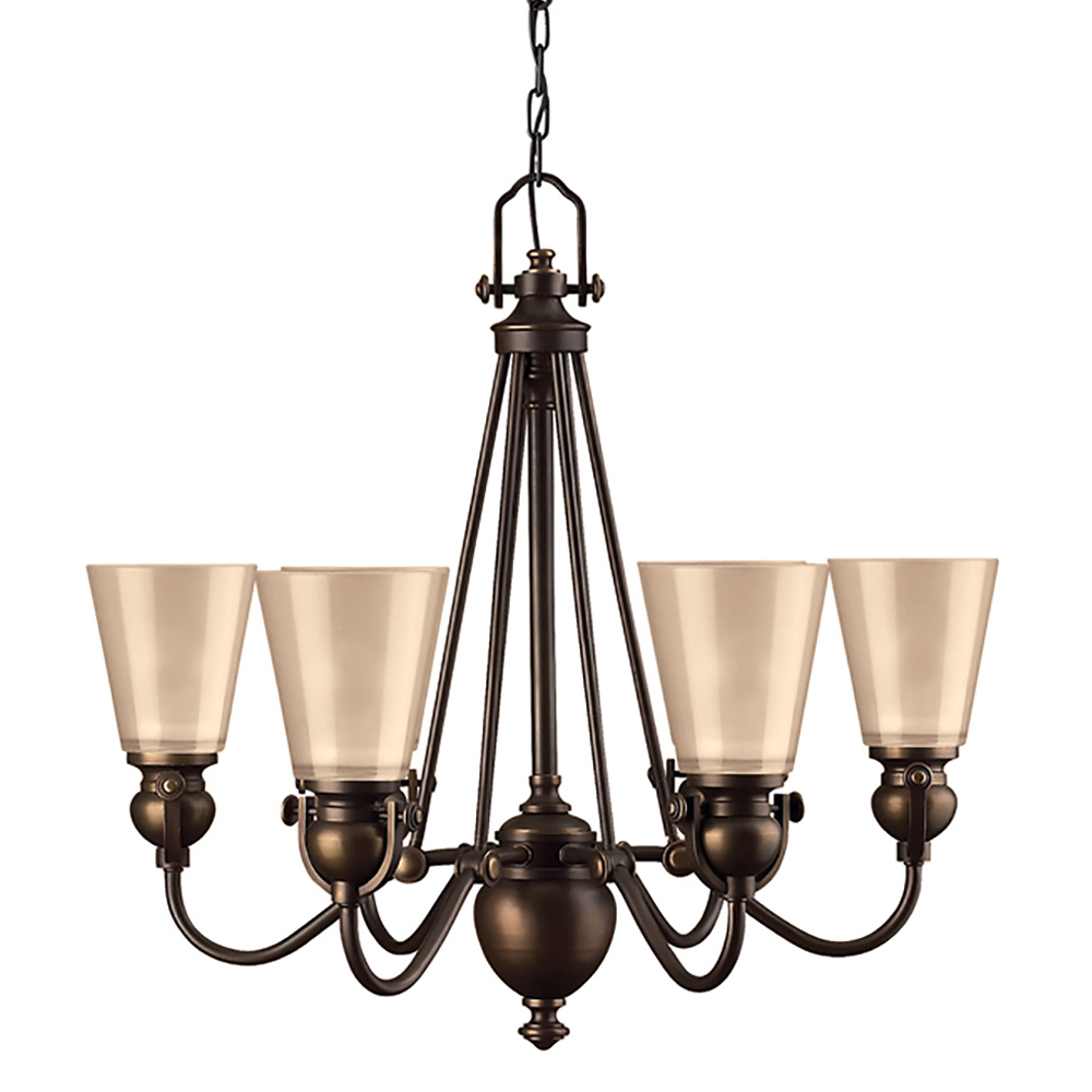 Люстра бронзового цвета с конусными плафонами из бежевого стекла Hinkley