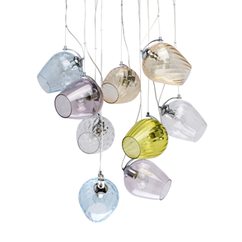 Люстра каскадная с 9-ю разноцветными стеклянными плафонами Kaleido
