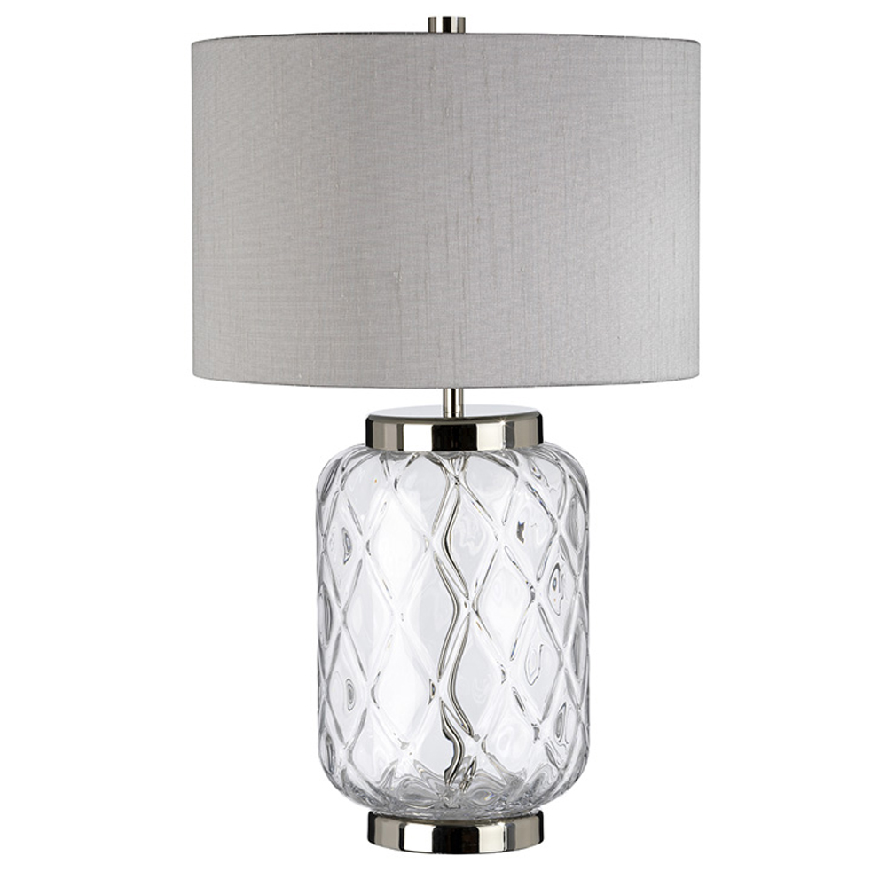 Настольная лампа с цилиндрическим абажуром и прозрачным стеклянным основанием Quintiesse Никель Темно-синий Прозрачное Стекло Серый в Ульяновске | Loft Concept