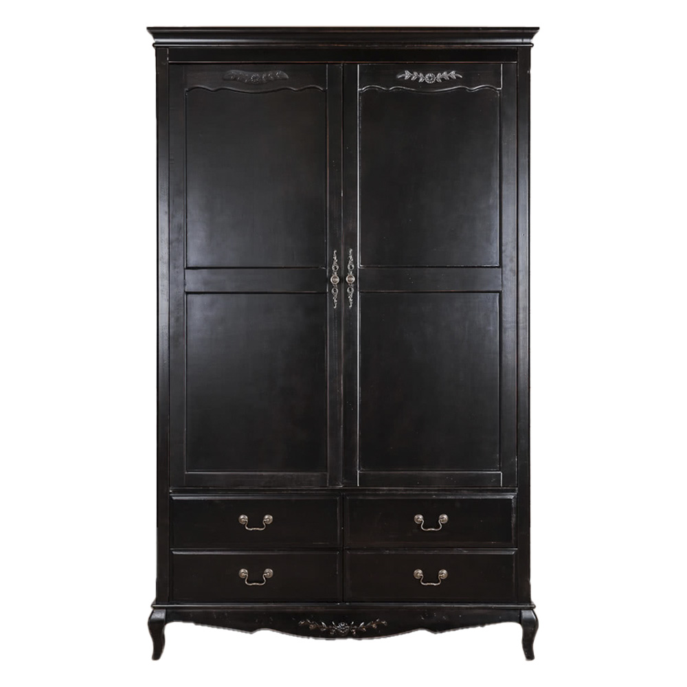 Шкаф черный с 4-мя ящиками и 2-мя дверцами в стиле Прованс Vintage