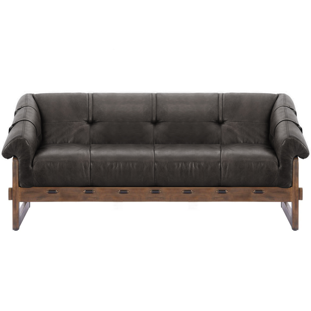 Трехместный диван Duncan винтажная черная кожа Черный Коричневый в Ульяновске | Loft Concept