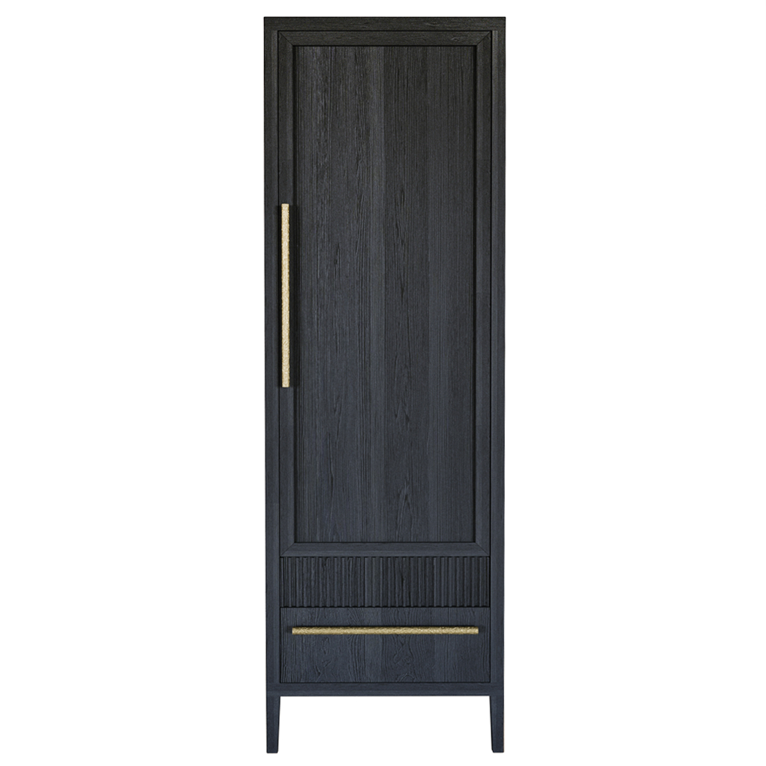 Узкий Шкаф Primo с 2 выдвижными ящиками Черный дуб Черный Золотой в Ульяновске | Loft Concept